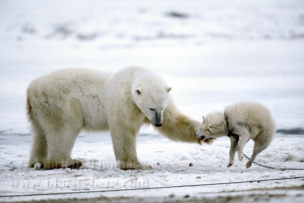 Home > Main Nature Photo Gallery > Americas (North, Central, South) > Marine Mammals > POLAR BEAR AND SLED DOG |